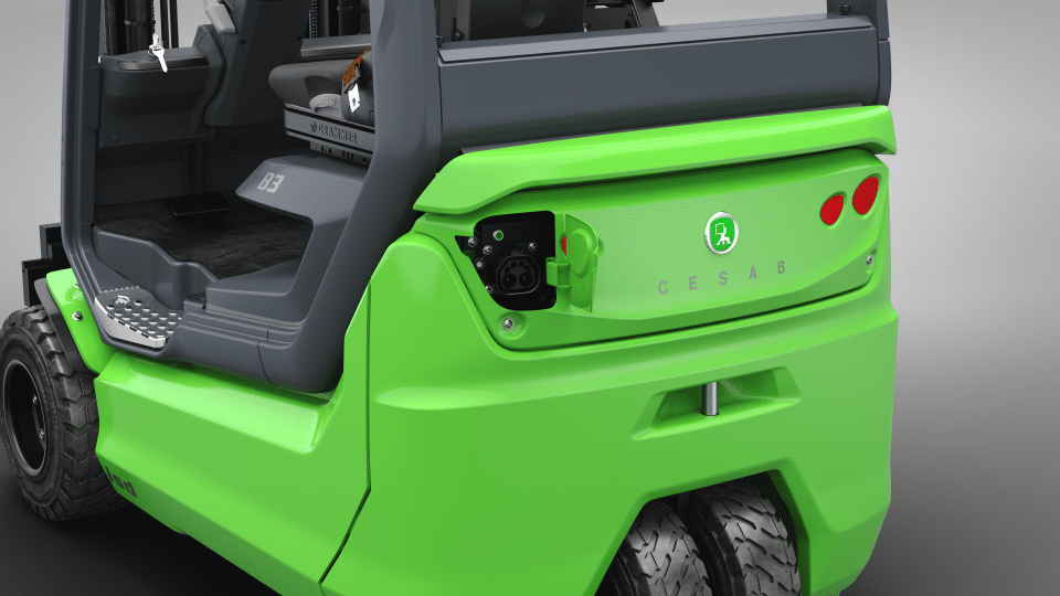 Vores B3 B4 Li‑Ion modeller er udstyret med Cesabs egen integrerede lithium‑ion‑batteriteknologi, som giver meget korte ladetider og er ideel til energikrævende opgaver eller 2‑skiftsdrift uden batteriskift. Li‑ion‑stikket er let tilgængeligt bag på trucken, integreret i kontravægten for hurtig og enkel opportunity charging.